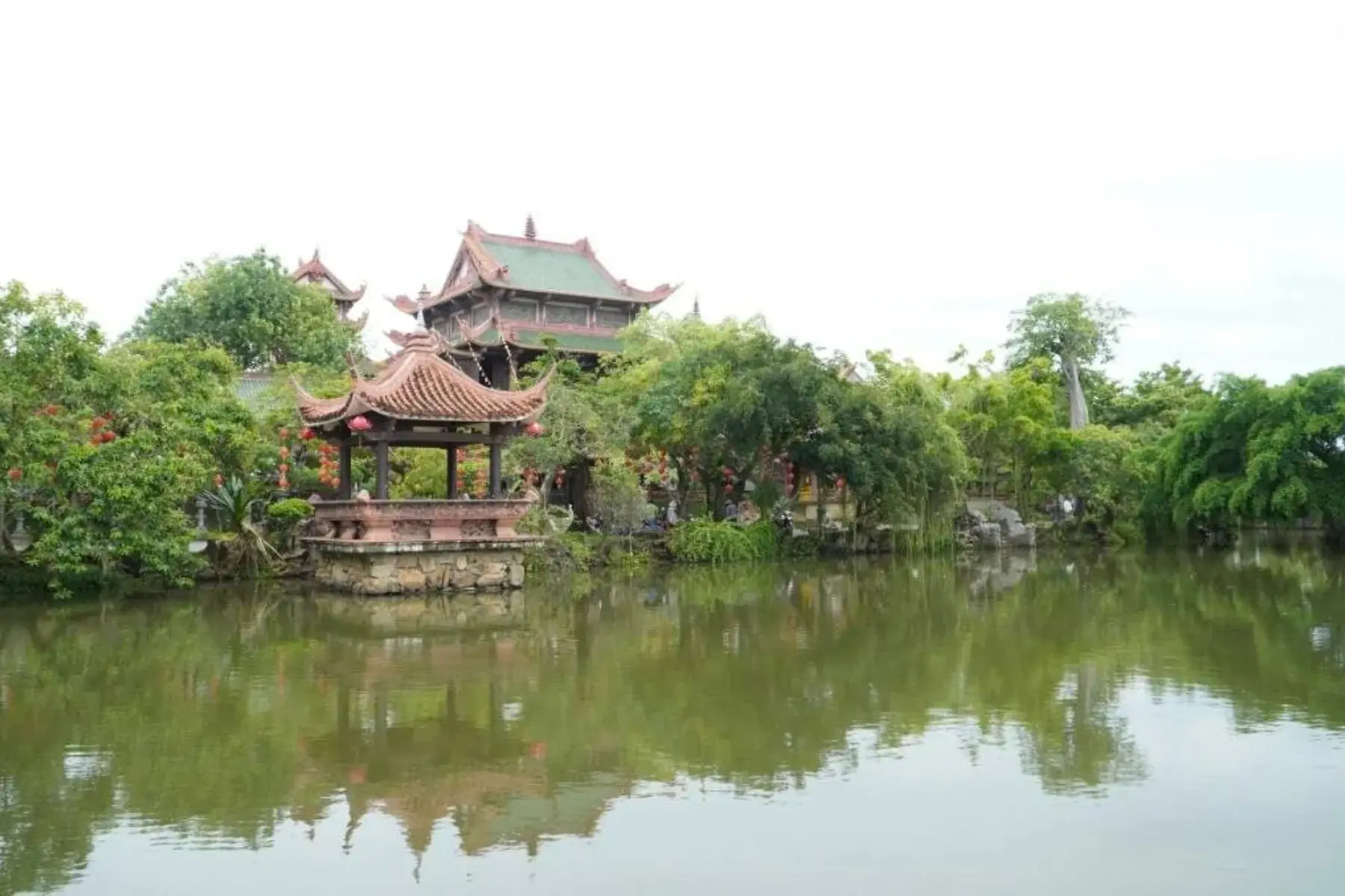14h30:Quý khách tham quan Chùa Thanh Lương- Tiểu cảnh hồ nước nơi đây có tượng Phật Bà Quan Âm lớn, được tạo hình như đang ẩn mình dưới nước độc đáo.